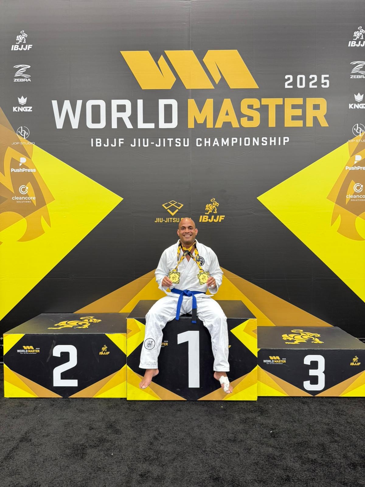Desta vez, ele brilhou no Mundial Master de Jiu-Jitsu 2025, realizado em Las Vegas, nos Estados Unidos, onde conquistou o cobiçado título de Double Golden – sagrando-se campeão na categoria acima de 105 kg e também na categoria absoluto (Open Class), onde enfrentam-se atletas de todos os pesos.