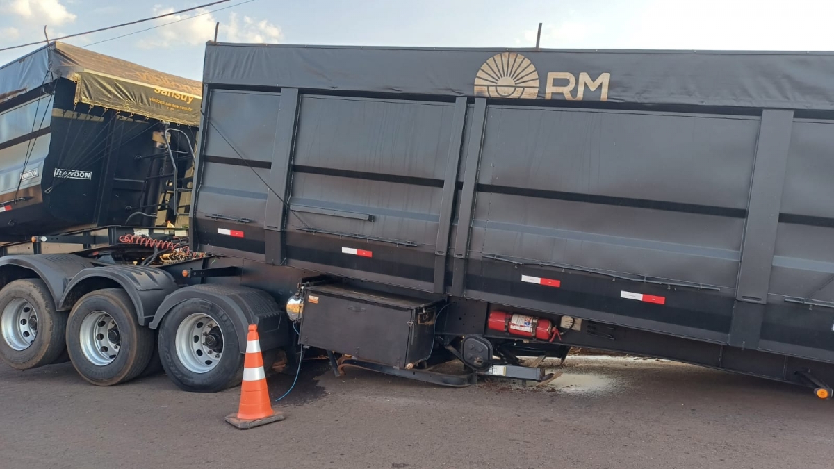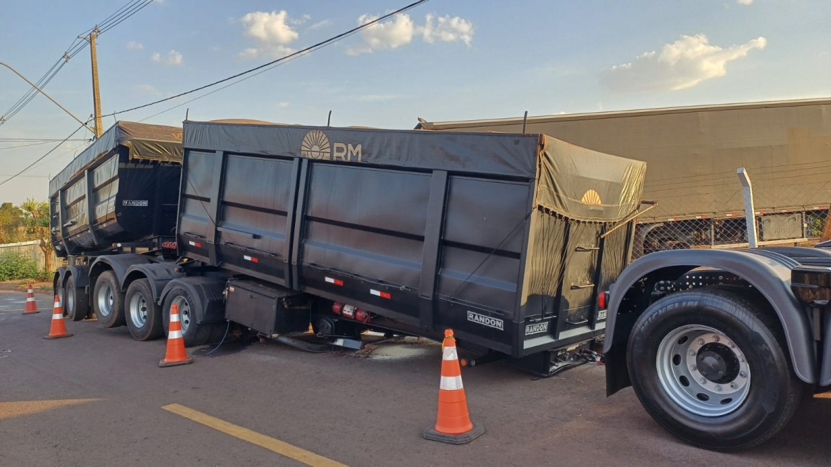 Uma ocorrência inusitada foi registrada no final da tarde desta segunda-feira (15), por volta das 17h15, na Avenida Luiz Brambatti. Um bitrem carregado de açúcar teve as carretas acopladas desprendidas do “cavalo” durante uma manobra, provocando a queda das mesmas no solo.