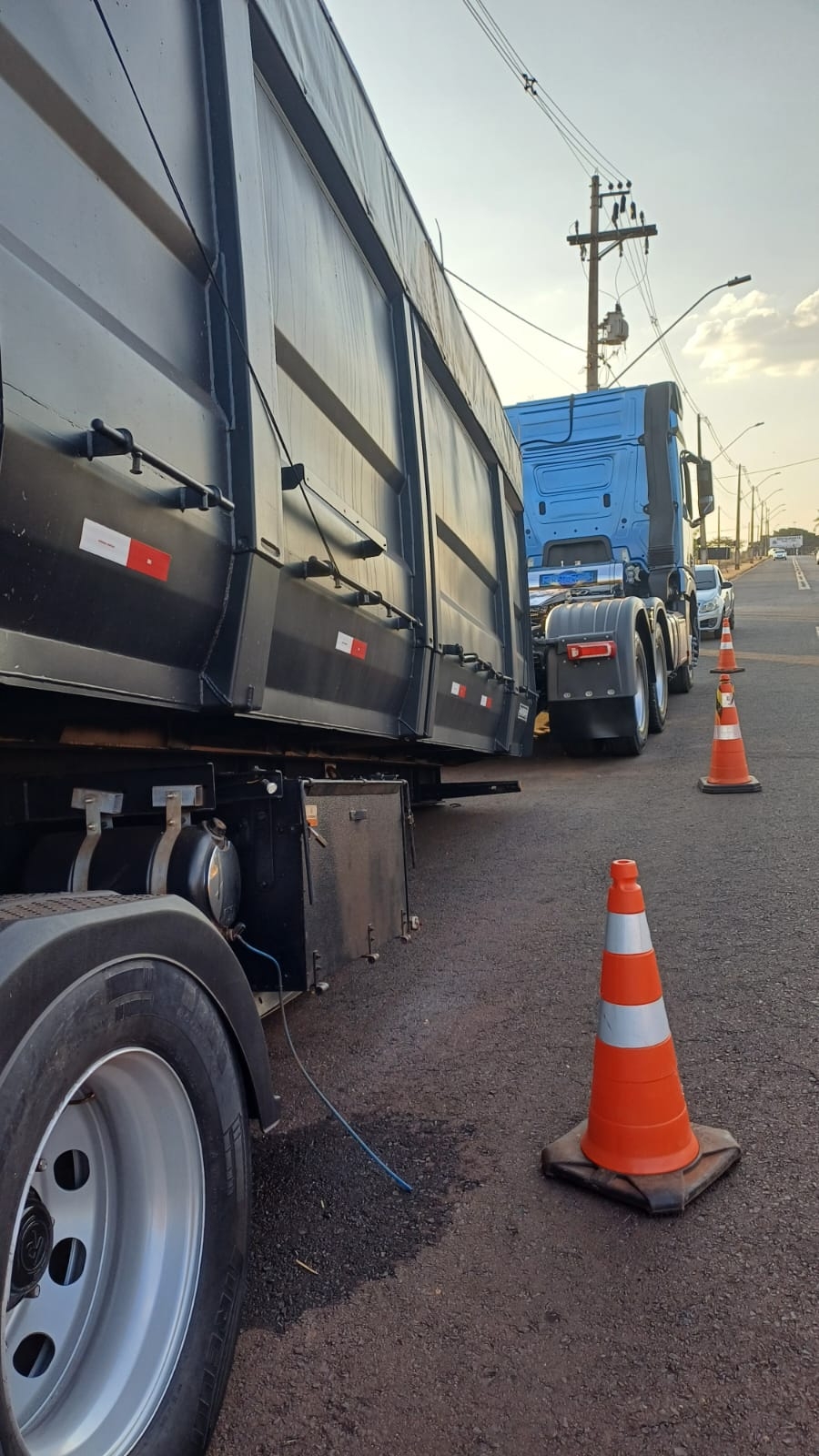 O agente de trânsito foi rapidamente acionado para sinalizar a via e garantir a segurança no local até que a seguradora da transportadora tomasse as devidas providências para a remoção do veículo.