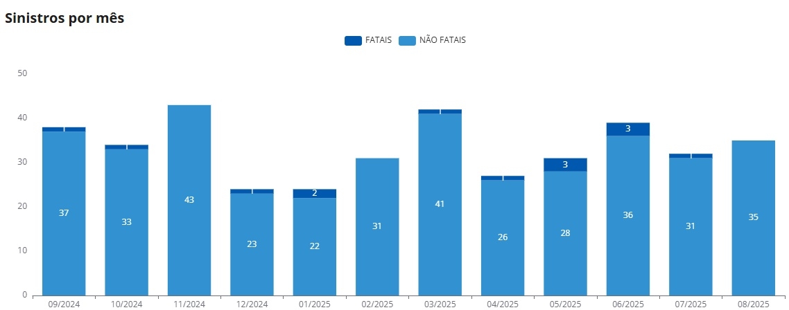 Outros indicadores preocupantes incluem a taxa de 2,02 mortes por 10 mil veículos e 3,5% de fatalidade entre os sinistros registrados, patamares que colocam o município em alerta.