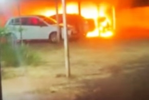 Um incêndio atingiu, na madrugada de sábado (20), o pátio de uma base da Polícia Militar na cidade de Paranapuã. O fogo começou por volta da 1h21 e rapidamente se espalhou, consumindo veículos estacionados e comprometendo parte da estrutura da cobertura do estacionamento. Há suspeita de incêndio criminoso.