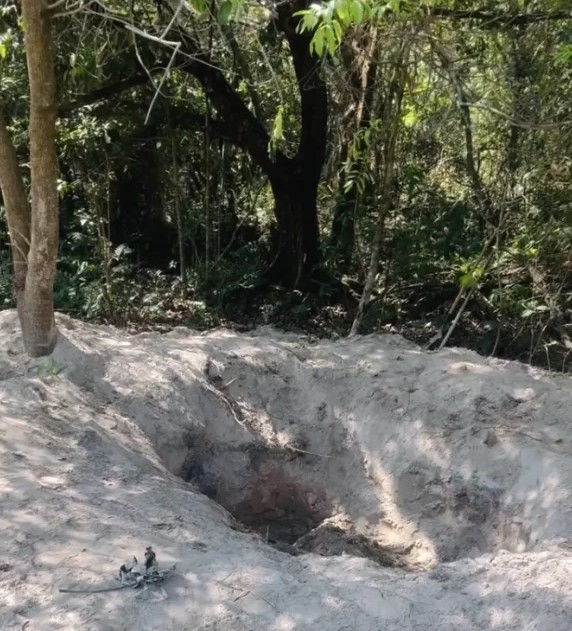 A cova foi localizada a cerca de 650 metros do ponto onde, no dia 12 de agosto, havia sido encontrada soterrada a Fiat Toro branca usada pelas vítimas. Os corpos estavam empilhados um sobre o outro.