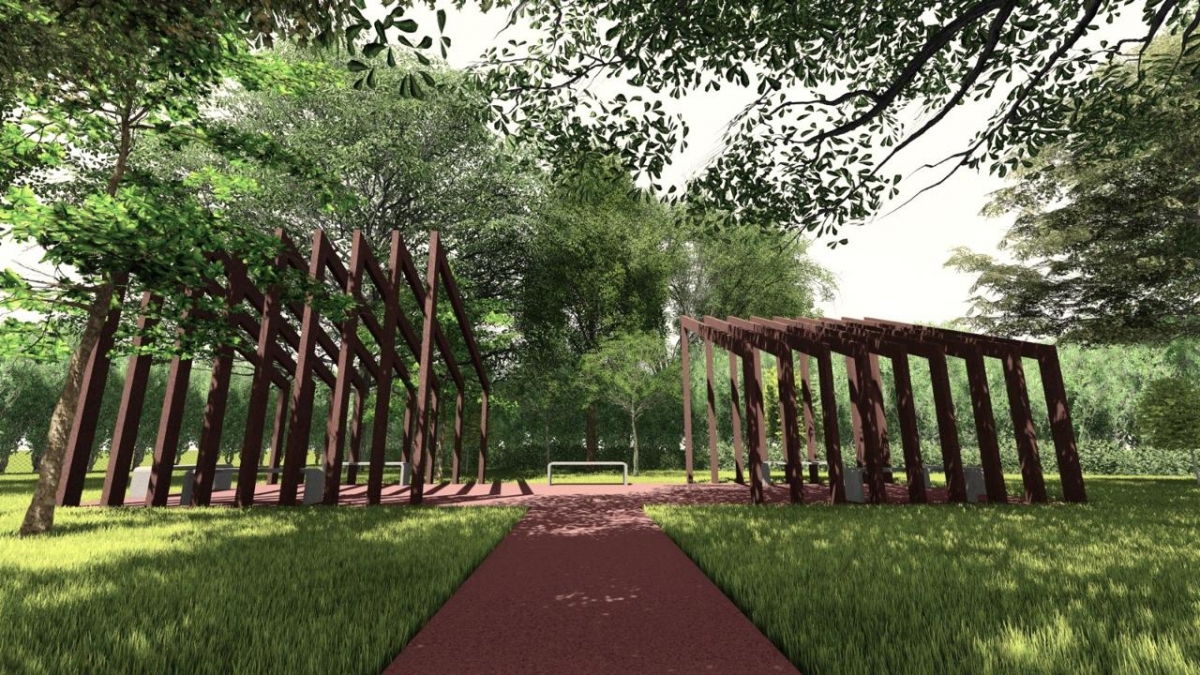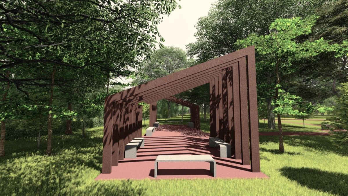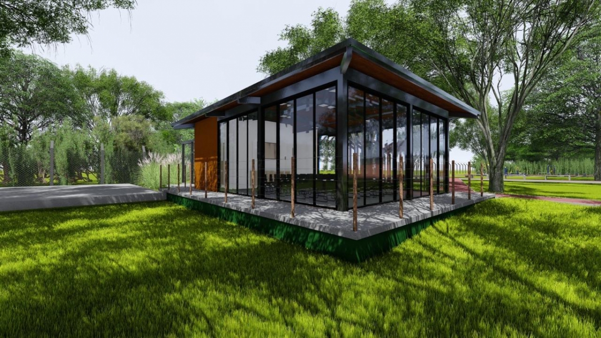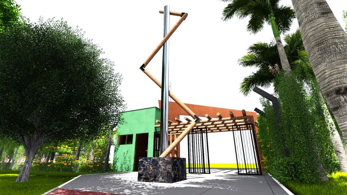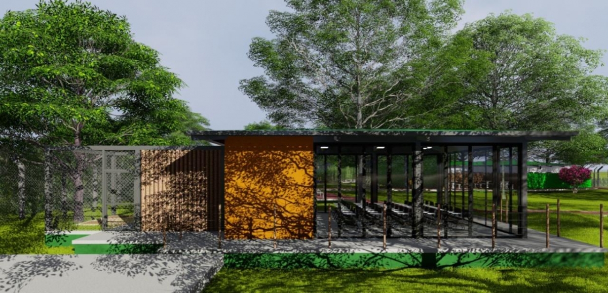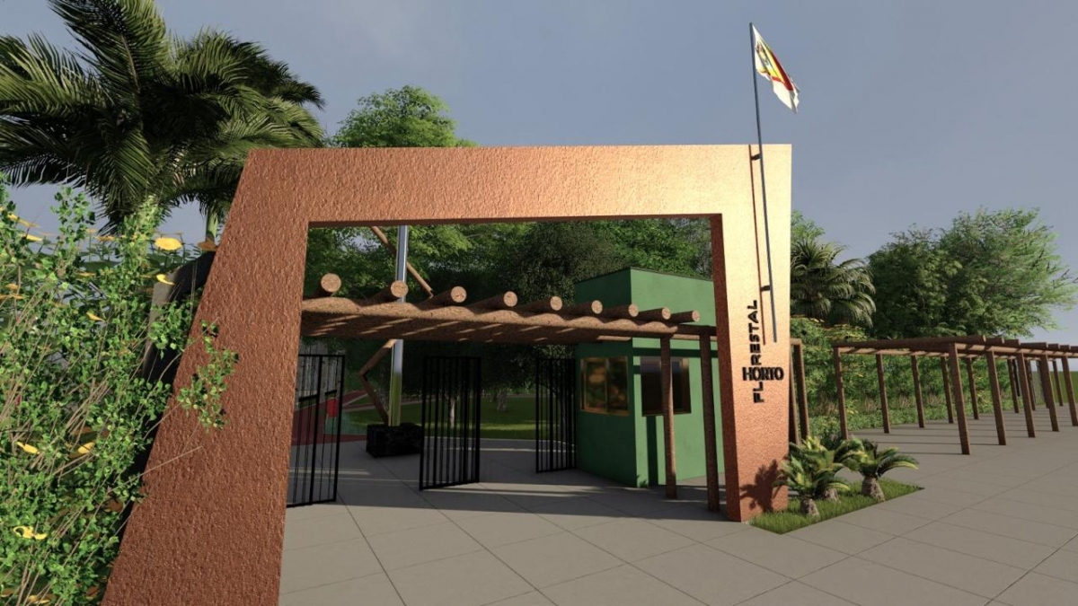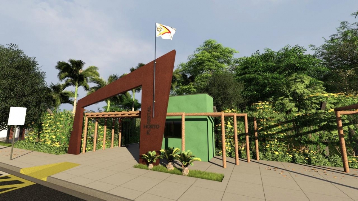 O pórtico terá guarita de segurança. Na parte externa haverá estacionamento e um pergolado para realização de feiras de artesanato e de produtores rurais.