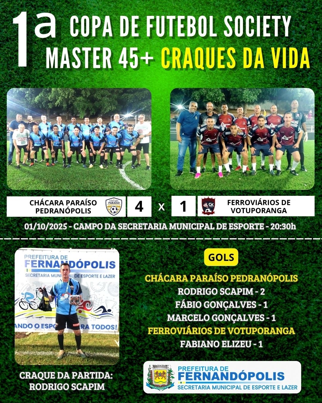O grande destaque da noite acabou sendo o time da Chácara Paraíso de Pedranópolis, que na partida, goleou o Ferroviários de Votuporanga por 4 a 1. Rodrigo Scapim fez dois gols e foi considerado o craque da partida. Fábio Gonçalves e Marcelo Gonçalves fizeram um gol cada. Fabiano Eliseu descontou para o Ferroviários.