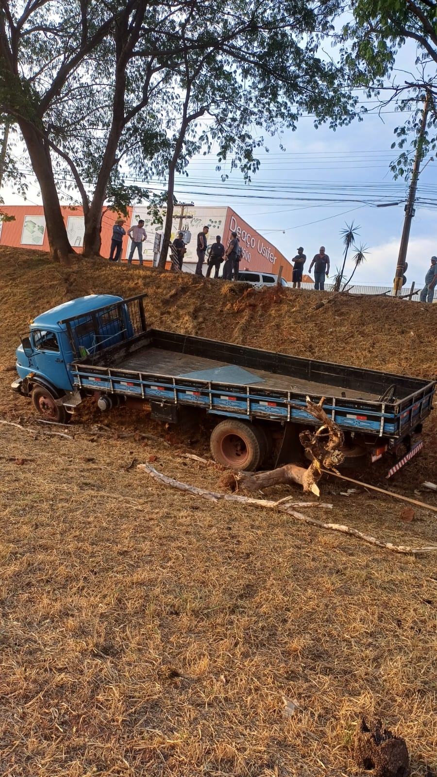 Um incidente no final da tarde desta segunda-feira (06), por volta das 17h30, mobilizou equipes da Polícia Militar, Departamento de Trânsito, DER e Secretaria de Obras, após um caminhão Mercedes-Benz de cor azul perder o freio e descer um barranco na Avenida Marginal Litério Grecco, próximo ao viaduto da Avenida Expedicionários.
