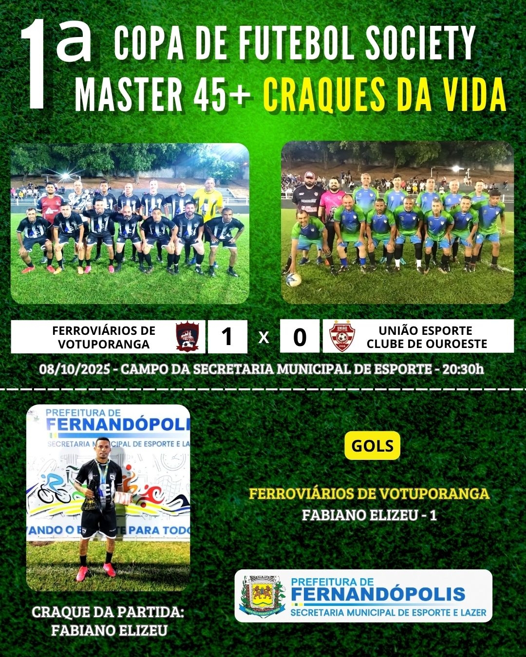 Em seguida, o time dos Ferroviários de Votuporanga enfrentou o União Esporte Clube de Ouroeste e garantiu a vitória por 1 a 0. O gol da partida foi marcado por Fabiano Elizeu, que também recebeu o título de craque do jogo.
