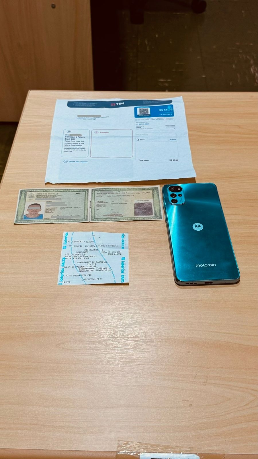 Durante a verificação de identidade, os policiais constataram que a fotografia presente no documento apresentado não correspondia à imagem registrada oficialmente. O suspeito também portava uma conta telefônica em nome de terceiro.