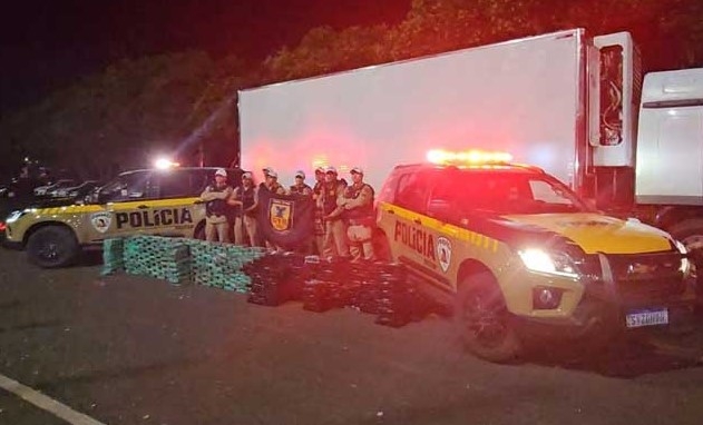 Durante a fiscalização, os policiais abordaram um caminhão baú frigorífico de cor branca, carregado com carne. O condutor, de 49 anos, demonstrou nervosismo e apresentou respostas contraditórias, o que levou os militares a realizarem uma busca detalhada no veículo.