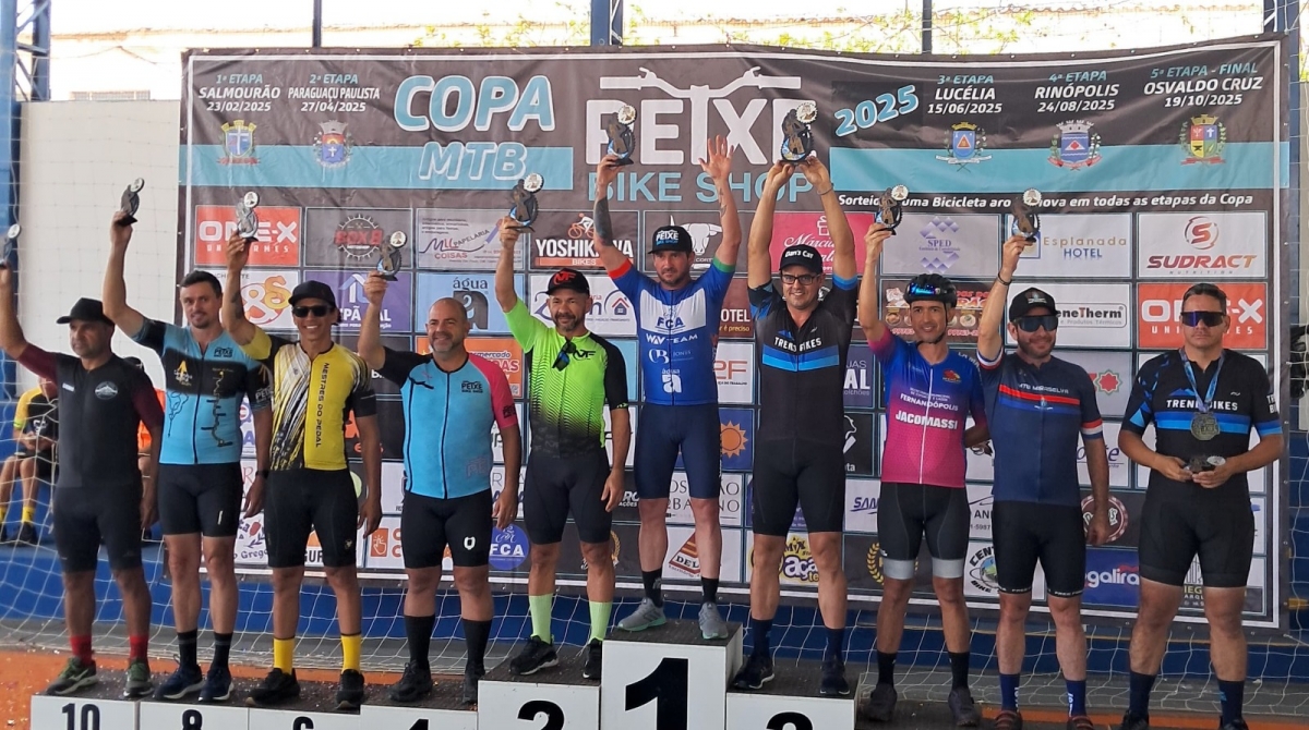 Já no domingo (19), na cidade de Osvaldo Cruz, foi realizada a grande final da 5ª edição da Copa Peixe de MTB 2025. Os atletas do município Fernando Romero e Carlos Almeida se destacaram na categoria Sport (40 a 49 anos). Fernando Romero conquistou a 3ª colocação geral da competição após uma temporada consistente nas cinco etapas da copa. Carlos Almeida também brilhou, alcançando a 5ª posição na etapa final e terminando o campeonato em 4º lugar geral. A Afercan, apoiadora oficial dos atletas, parabenizou Fernando e Carlos pelo desempenho e o comprometimento com que representaram a cidade.