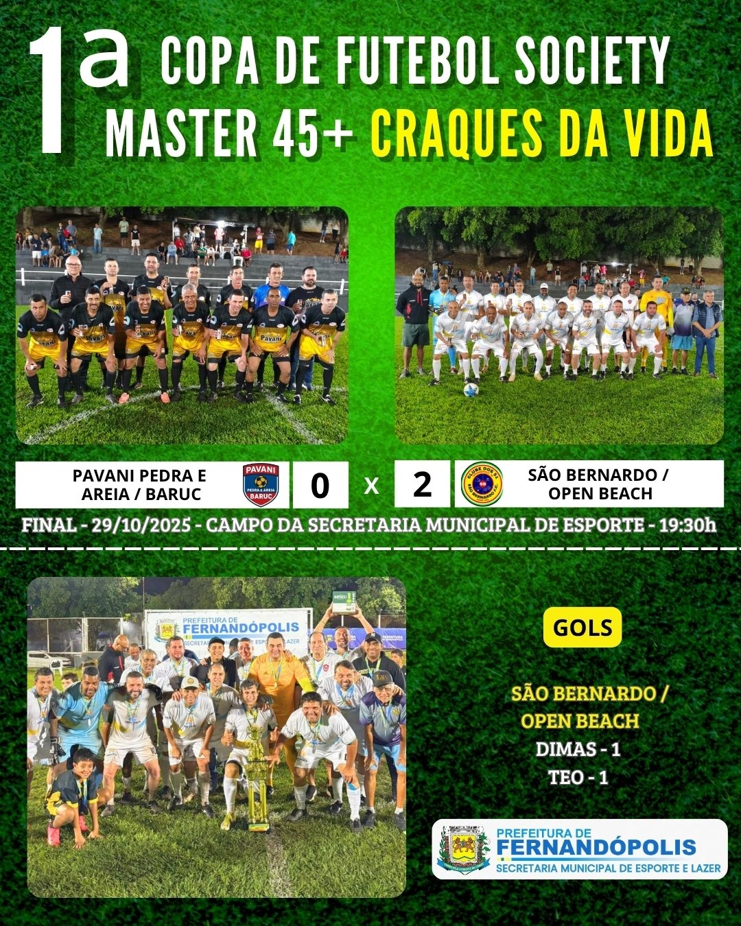 Na finalíssima do torneio, disputada nesta quarta-feira, 29, no campo da Secretaria Municipal de Esportes e Lazer, São Bernardo e Pavani fizeram um jogo equilibrado e com chances de ambos os lados.