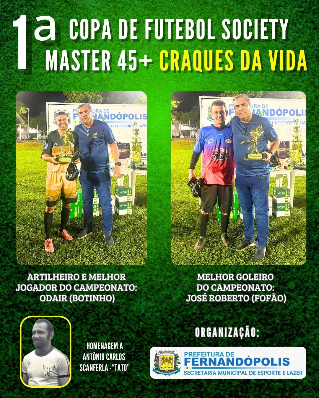 O São Bernardo Open Beach é o grande campeão da “1ª Copa de Futebol Society 45+Craques da Vida”, que homenageou o falecido Antônio Carlos Scanferla, o “Tato”, maior artilheiro da história do Fefecê.