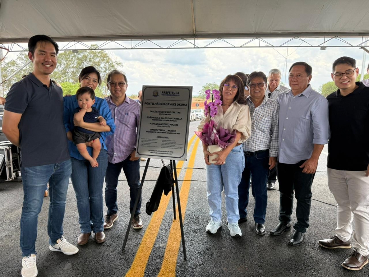 A segunda inauguração foi a do Viaduto Masayuki Okuma, no cruzamento com a Vicinal Carlos Gandolfi, estrada que dá acesso ao município de São João das Duas Pontes. A família Okuma compareceu em grande número à solenidade (até Lucas, de 10 meses de idade, bisneto do homenageado, estava presente). Também Edson e Roberto, filhos de Masayuki que administram o entreposto da família em Campinas, vieram para a homenagem.