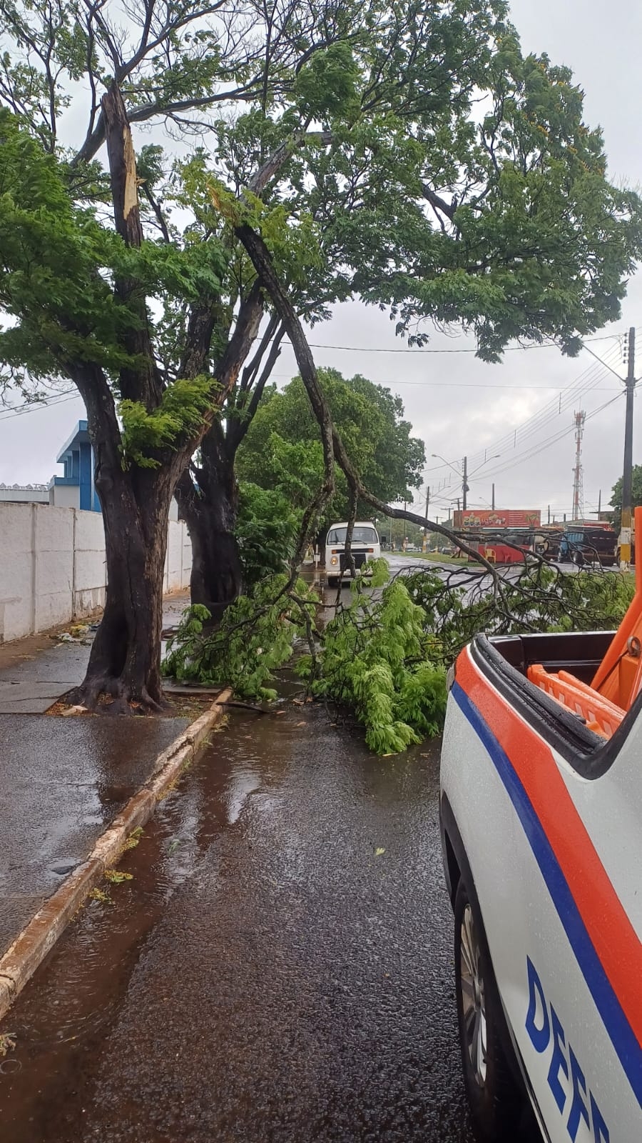 Equipes da Secretaria de Trânsito e da Defesa Civil foram acionadas e chegaram rapidamente ao local para avaliar a situação.