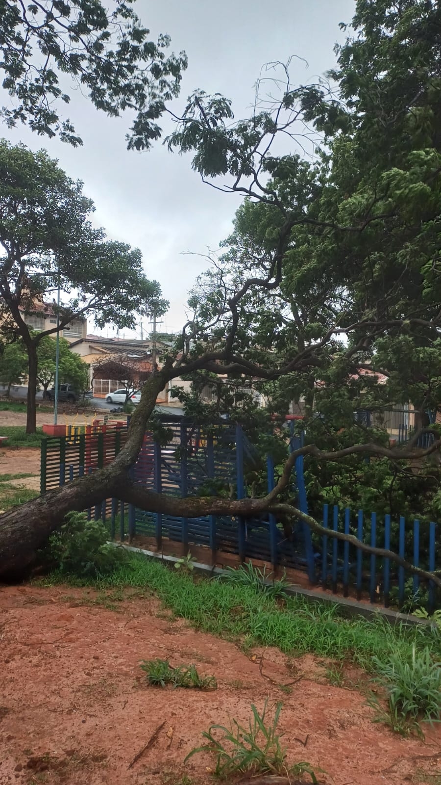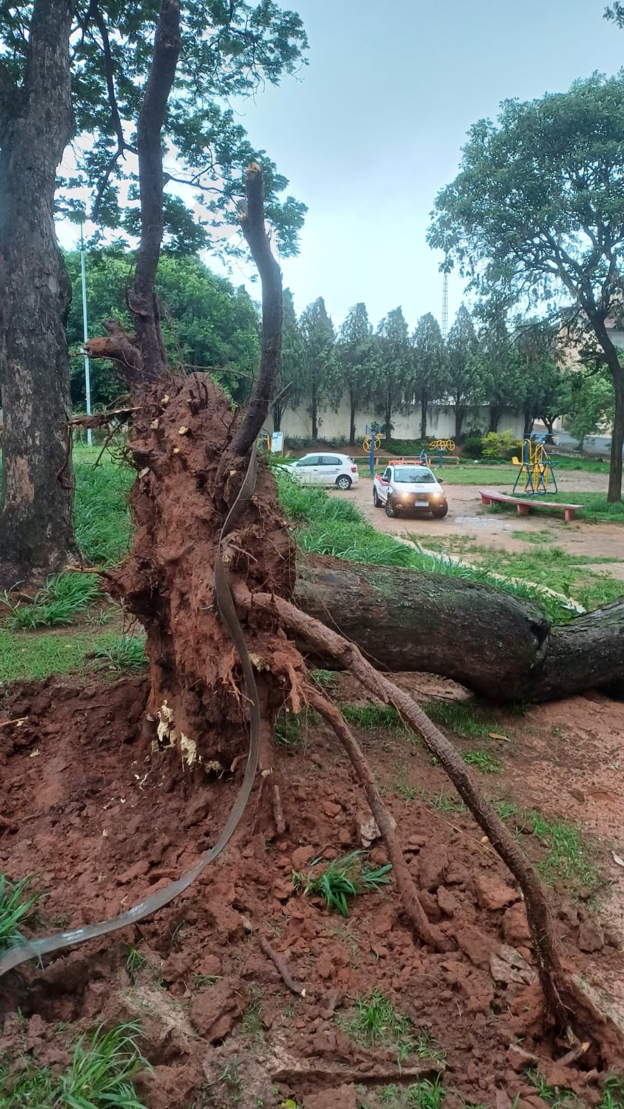 A árvore, apesar de caída, não representa risco de novos desabamentos, segundo os agentes que atenderam à ocorrência. O local foi isolado preventivamente para garantir a segurança dos frequentadores do espaço.