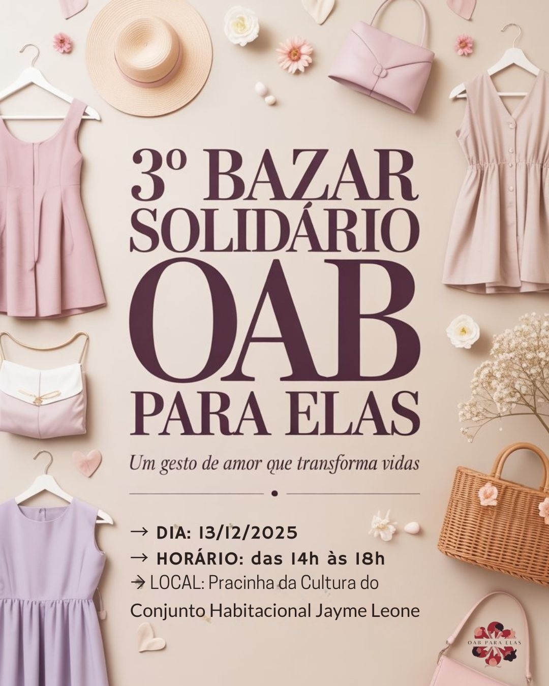 A 3ª Edição do Bazar Solidário OAB para Elas está se aproximando, e a organização do evento iniciou a campanha de arrecadação de doações. A iniciativa convida a população a revisar o guarda-roupa e contribuir com peças que possam ajudar quem mais precisa.
