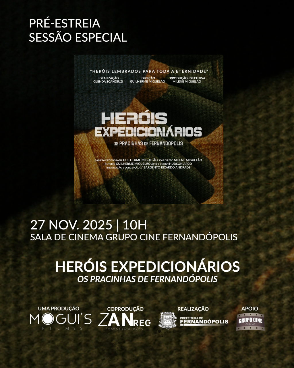 Em homenagem aos 80 anos da Força Expedicionária Brasileira (FEB) e aos 50 anos do Tiro de Guerra 02-083, a Prefeitura Municipal de Fernandópolis apresenta o documentário Heróis Expedicionários - os Pracinhas de Fernandópolis, dirigido pelo cineasta fernandopolense Guilherme Miguelão. (Veja o trailer )