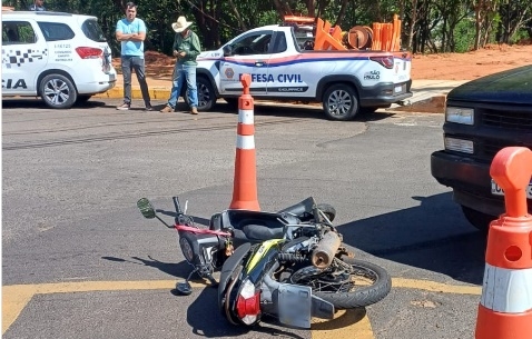 Uma colisão entre um carro e uma motocicleta foi registrada na manhã desta quarta-feira, 18, por volta das 9h, no cruzamento da Avenida Amadeu Bizelli com a Avenida Aldo Livorati.