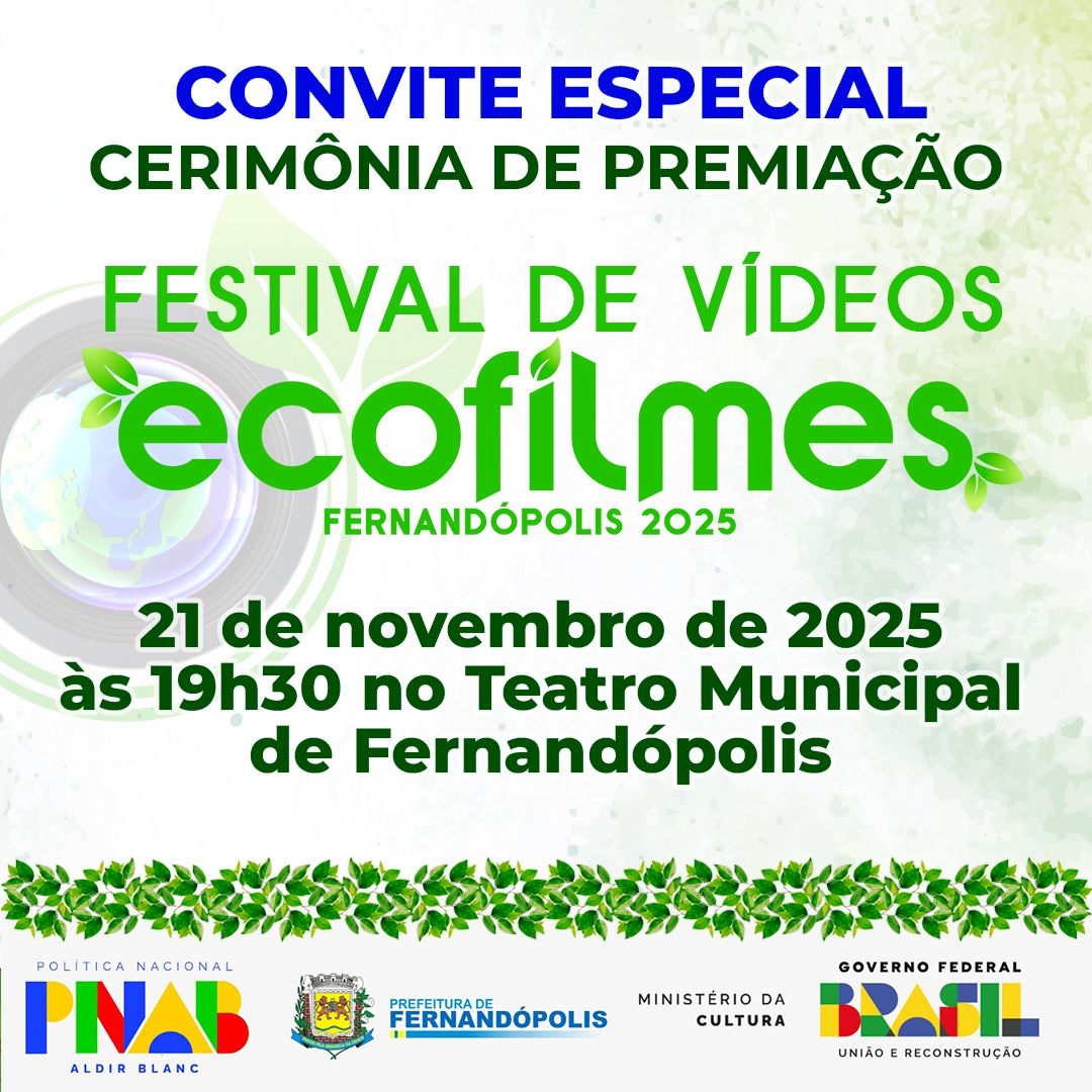 A cidade viverá um momento especial nesta sexta-feira (21), com a cerimônia de premiação do Festival de Vídeos ECOFILMES Fernandópolis 2025. O evento, que mobiliza estudantes, educadores e apoiadores da sustentabilidade, ocorrerá às 19h30 no Teatro Municipal, reunindo a comunidade, autoridades e parceiros do projeto.
