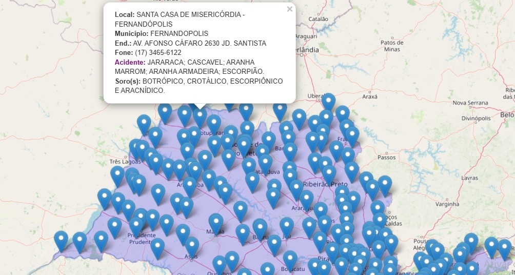 O estado conta atualmente com 232 Pontos Estratégicos de Soro Antiveneno (PESAs), estrategicamente distribuídos para reduzir o tempo entre a picada e o atendimento, especialmente em crianças. Em Fernandópolis, a Santa Casa funciona como o ponto de atendimento com soro antiescorpiônico.