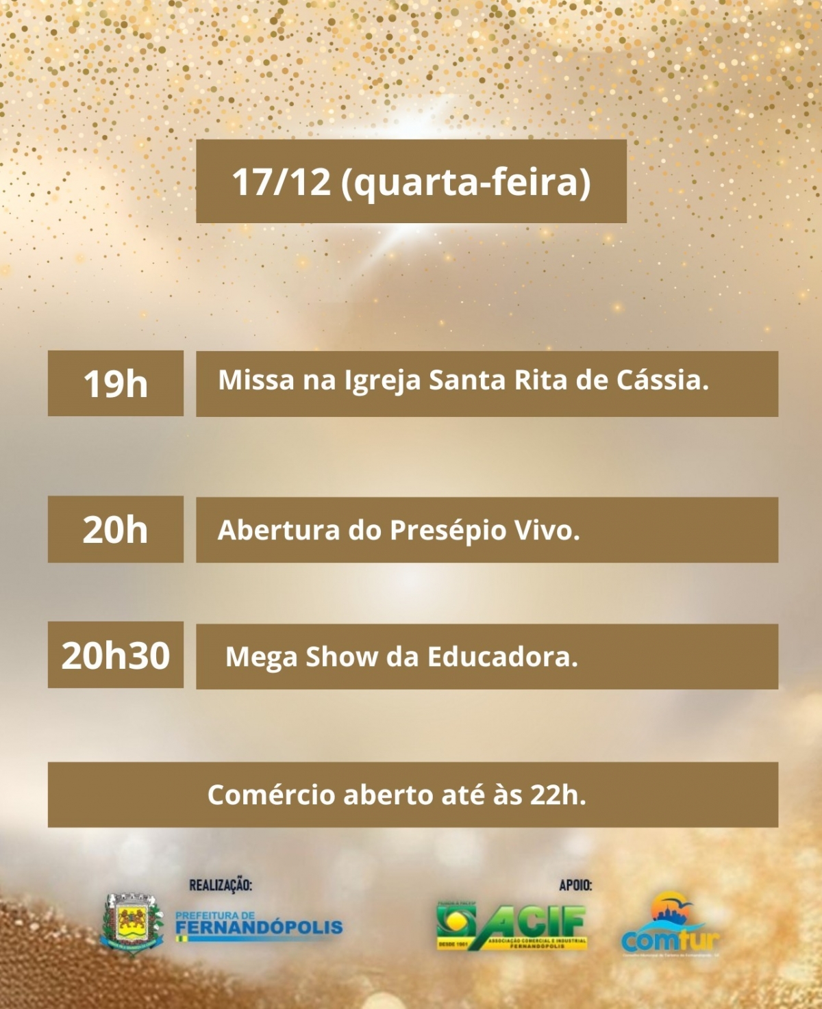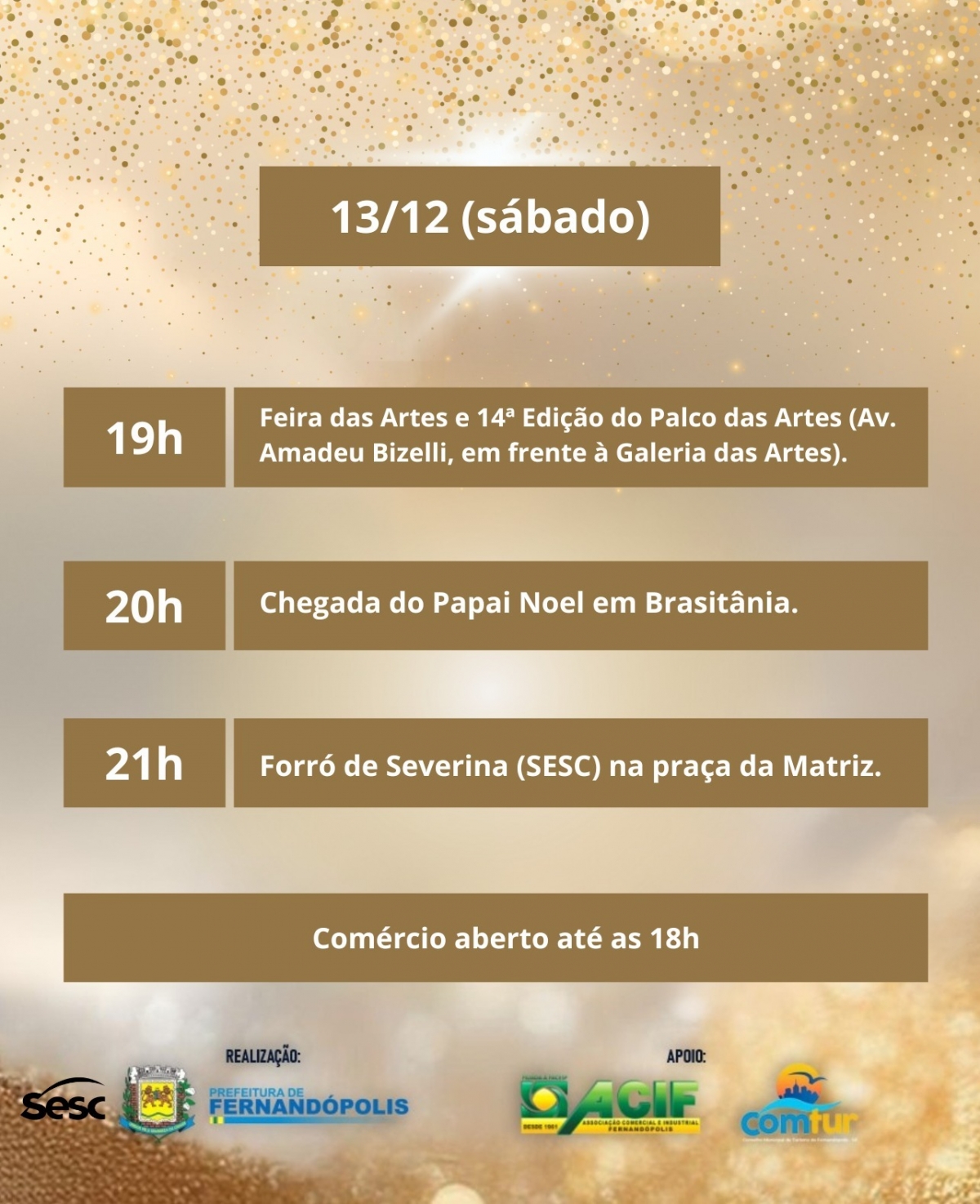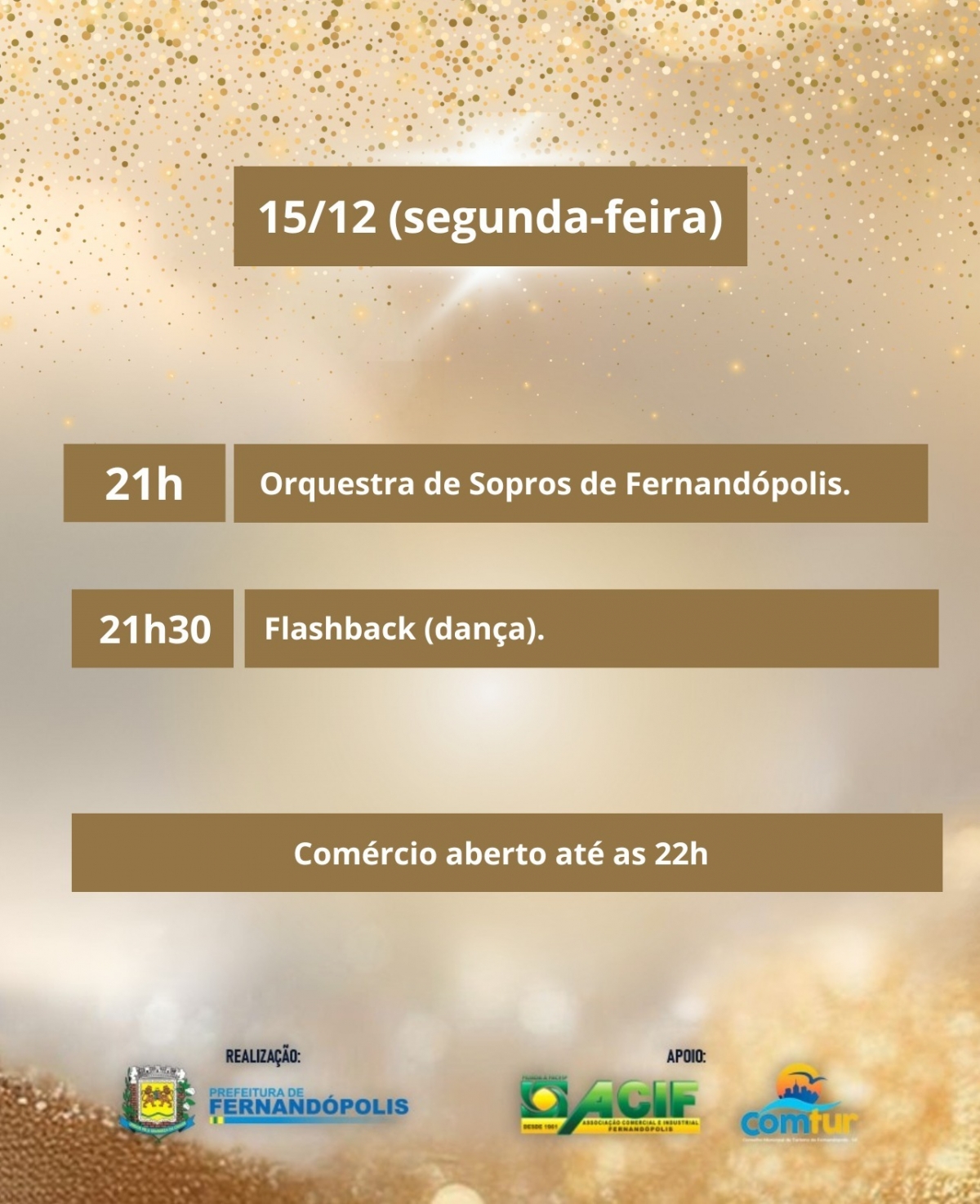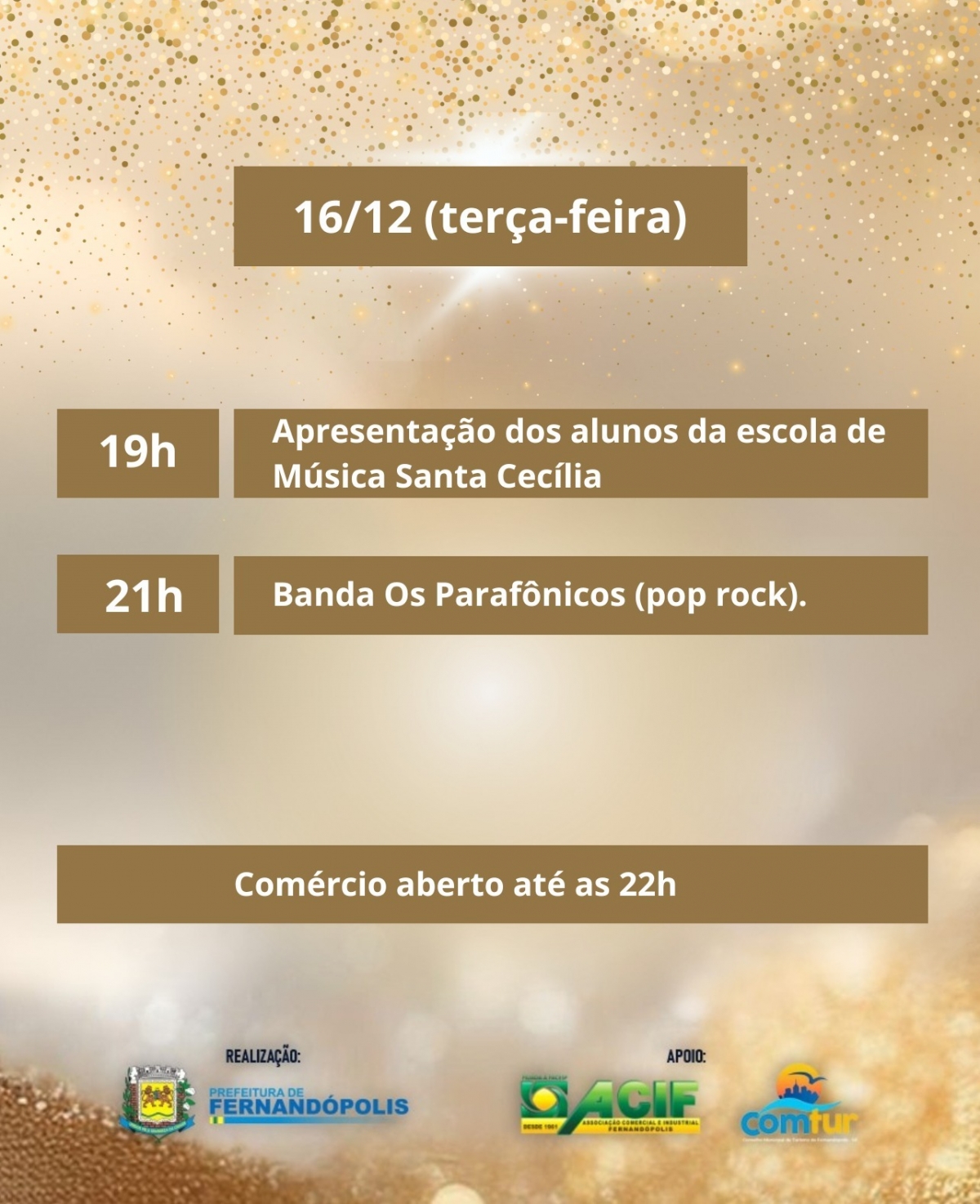 Outro destaque é o acendimento do Túnel de Luzes na Rua São Paulo, criado em parceria com a ACIF. Com mais de 50 mil pontos de luz, o local promete ser um dos principais cenários para fotos e encontros durante toda a programação.