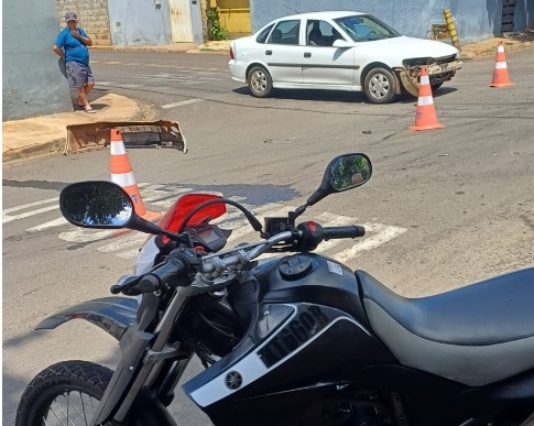 Um acidente entre um carro e uma motocicleta foi registrado nesta quinta-feira, 11, no cruzamento da Rua Pernambuco com a Rua Santiago R. Garcia, no sentido Bairro Distrito Industrial.