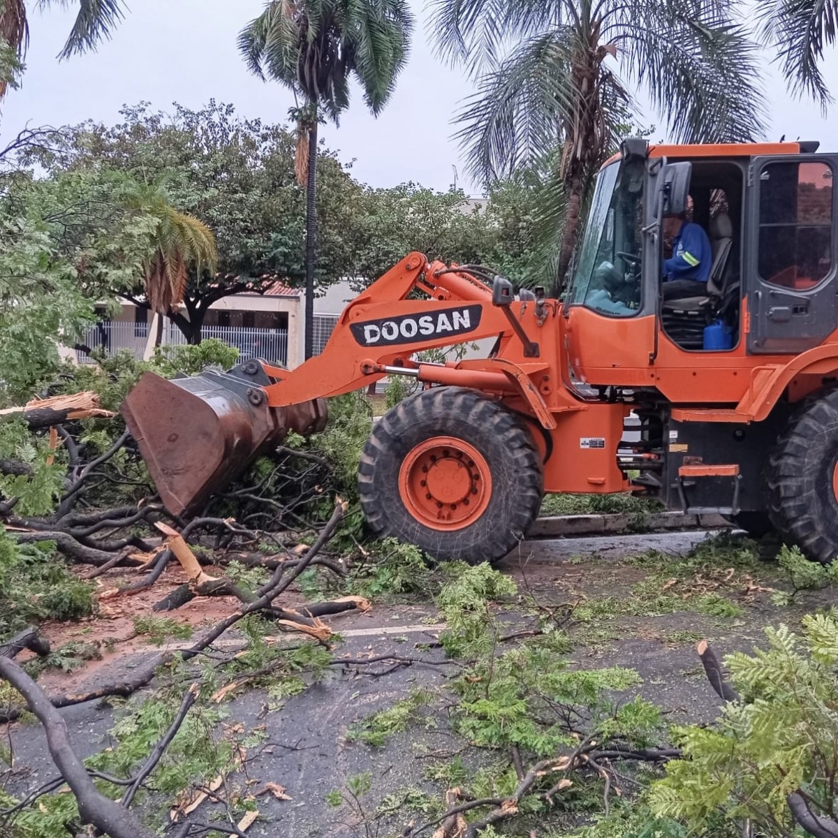 Segundo a Defesa Civil, a maior rajada de vento registrada durante o temporal foi de 46 km/h. Equipes da Defesa Civil e da Secretaria de Obras seguem trabalhando na remoção das árvores que caíram em ruas e avenidas da cidade.