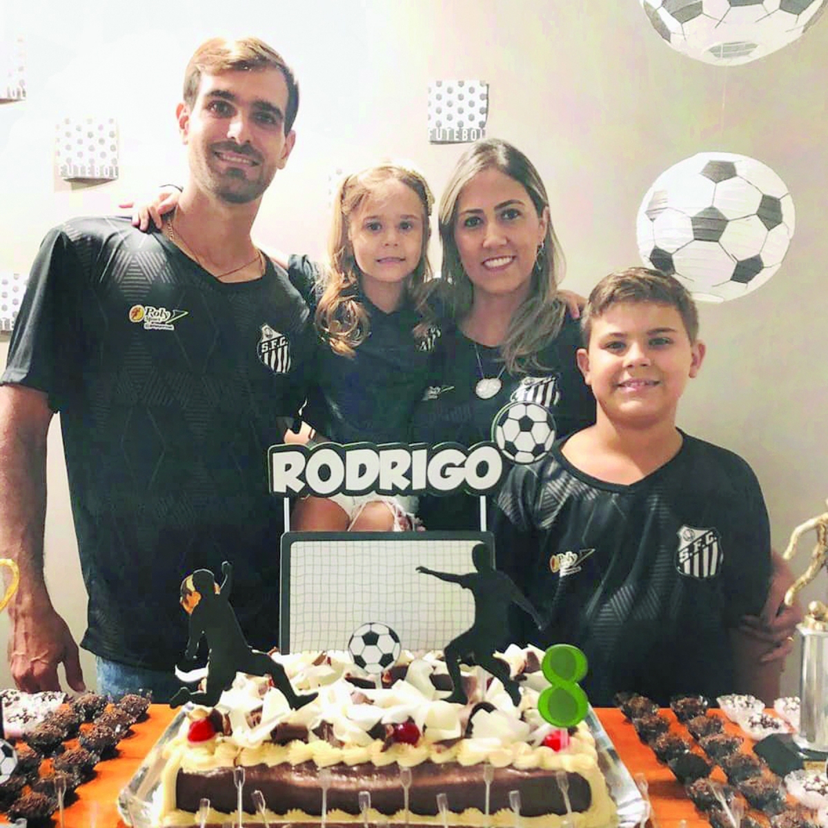 O aniversariante com os pais Thiago Rodrigo feliz da vida com a chegada dos 8 anos e Juliana e com a irmã Ana Júlia