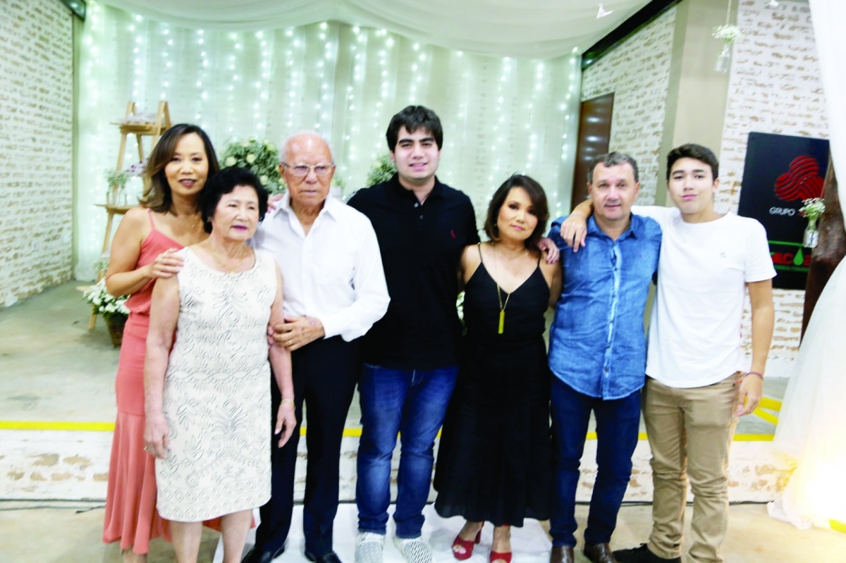 Paulo Jefferson, Luisinho Arakaki, Claudemir Isaias, Zeca Arakaki e Mauro Sá com Kosuke e Angelina
