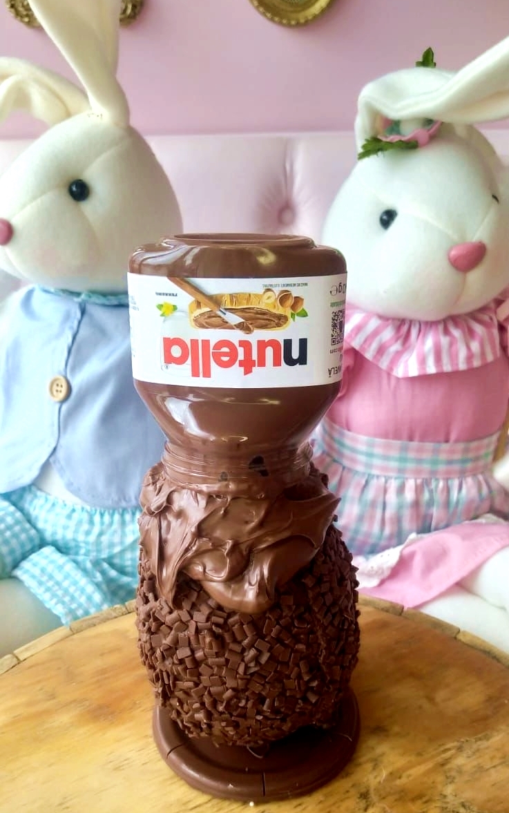 Completando um ano de funcionamento, a Renata Vilela Cakes, mais uma vez mostrou toda sua habilidade e talento em inovar e trouxe para essa páscoa o ovo de chocolate em pé, deliciosamente trufado e para finalizar, nada mais, nada menos que um pote de Nutella escorrendo sobre ele. Simplesmente isso. Uma verdadeira escultura. Impossível não agradar, não é mesmo?