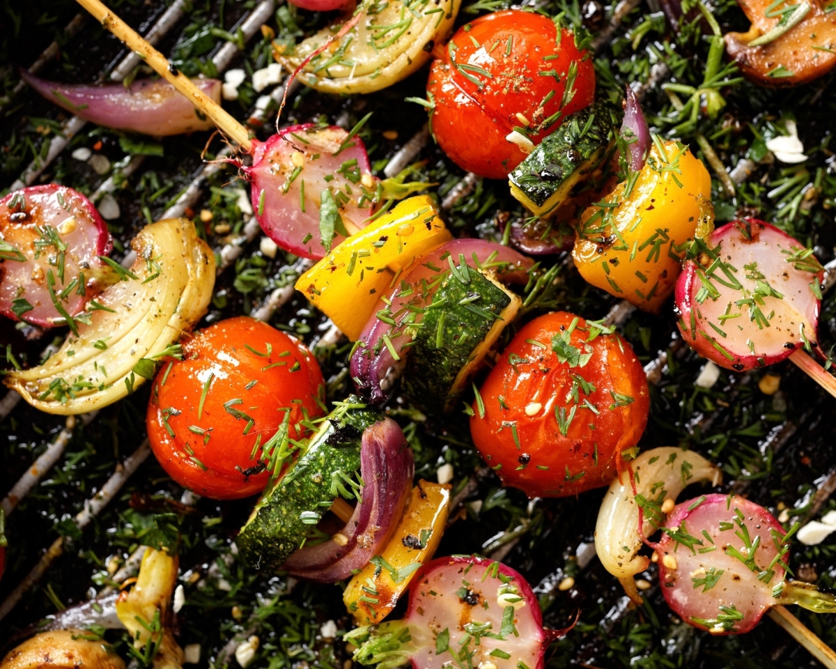 Além da carne, gosto de me aventurar em opções diferentes na churrasqueira. Os legumes sempre surpreendem até quem torce o nariz quando vê a grelha toda colorida. Geralmente costumo usar o que tenho na geladeira e colocá-los em espetinhos como por exemplo: abobrinha, cenoura, berinjela, cebola e tomate. Faço uma mistura de temperinhos com azeite e mostarda e vou pincelando nos espetos antes de colocar na grelha. Fica um espetáculo!! Outro legume que já fiz foi o repolho. Cortei em pedaços grandes e besuntei com um molho à base de shoyu, limão e gengibre. Coloquei uns pedaços de bacon bem pequenos e embrulhei no papel alumínio. Deixei na churrasqueira por alguns minutos e o resultado foi surpreendente! Ficou dos deuses.