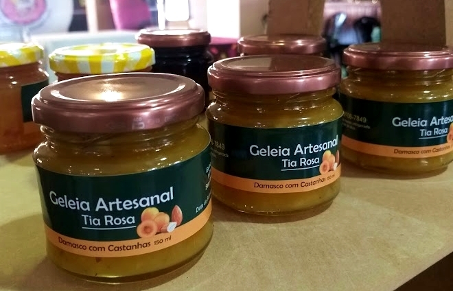 Outro grande sucesso foram as geleias da Tia Rosa, que aliás, não só os produtos, mas ela também fez o maior sucesso com sua simpatia. Na feira, os visitantes tinham a oportunidade de experimentar todos os sabores das geleias produzidas por essa matriarca maravilhosa e, confesso, ficava difícil escolher uma só para levar viu! A minha preferida, de cebola com bacon, pelo jeito também foi do povo que passou por lá, viu. Outra que fez sucesso foi de damasco com castanhas, que é a grande novidade para esse fim de ano.
