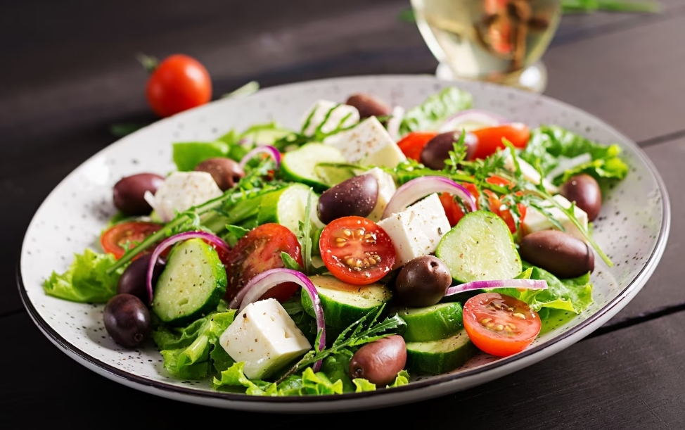 No meu prato durante todo o ano, independente da estação, nunca falta uma saladinha. No verão ela é ainda mais constante e com um volume muito maior, diga-se de passagem. Gosto da praticidade da salada e da versatilidade que ela proporciona. Muitas vezes utilizo o que tenho na geladeira e fica show! Porém, tenho algumas preferidas. A salada grega é uma delas. Uma mistura simples de tomate cereja, pepino, queijo, azeitona preta e cebola roxa. Além de ir muito bem como acompanhamento de um prato, ela também pode ser servida como petisco.