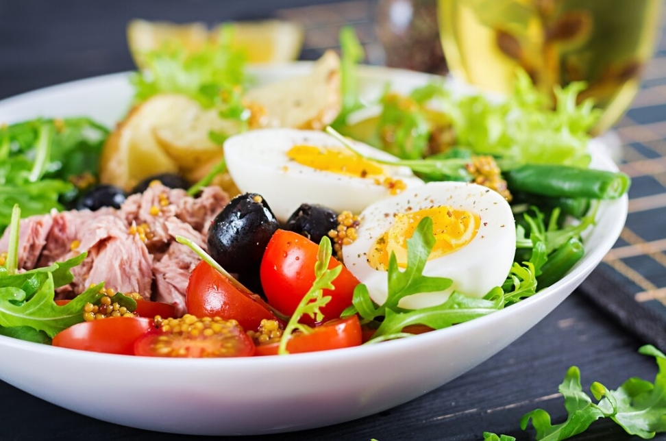 Muita gente gosta da tradicional salada caesar, confesso que está longe de ser a minha preferida. Ao invés do frango, prefiro utilizar o atum ou ovos como proteína à salada. Fica mais leve e refrescante. E também gosto de adicionar couve flor, vagem e brócolis. Enfim, vou variando a mistura de acordo com a promoção da quitanda da semana e, claro, para não enjoar também. Quando tenho palmito também adoroooo acrescentar! Dá um upgrade na saladona tradicional.