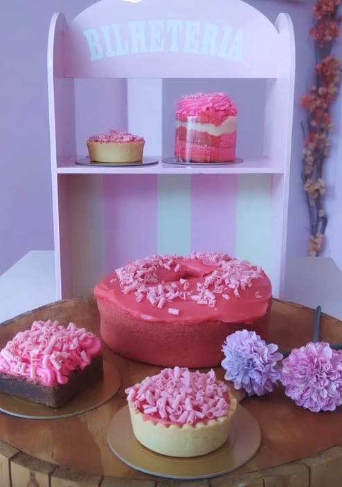 Na Renata Vilela Cakes, os bolos, tartelettes, brownies, suspiros e macarrons ficaram todos pinks e cheios de frufrus para o delírio das apaixonadas por rosa.