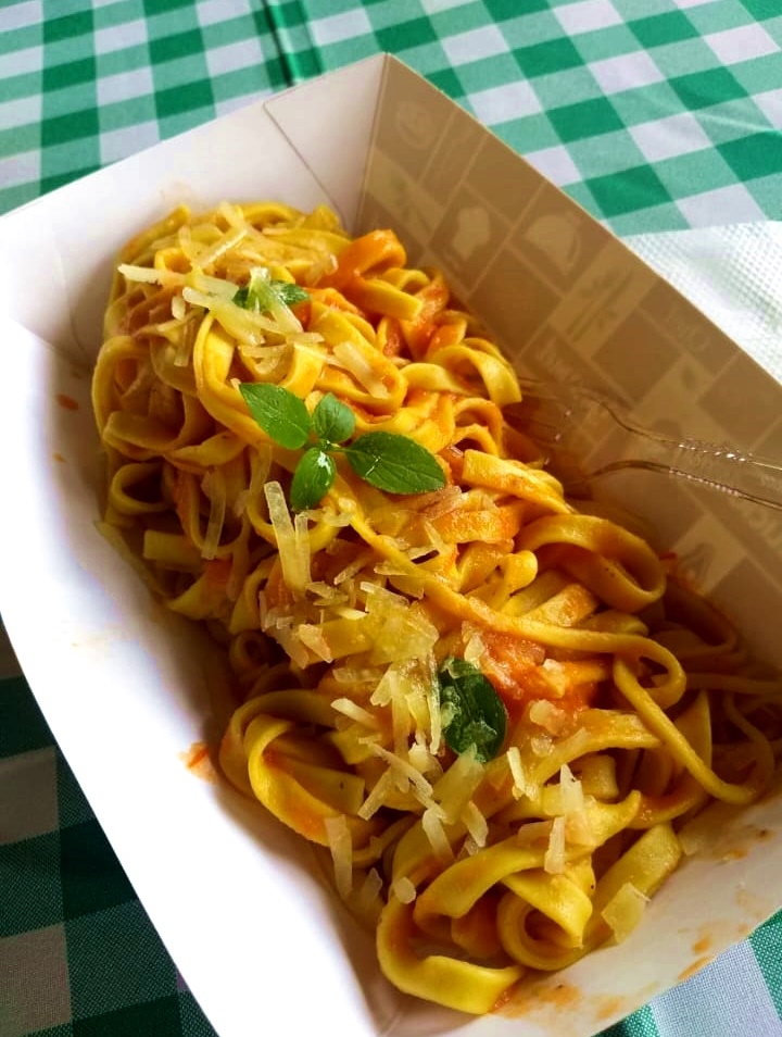 Come una bellissima ragazza italiana, as massas são sempre meu ponto fraco. E na feira temos massas que são preparadas na hora para saborear e não passar vontade e também aquelas que você pode levar para casa e compartilhar com a família toda. Uma das minhas preferidas é o ravióli com ricota e limão siciliano e, claro, o talharim ao molho sugo. Um luxo!